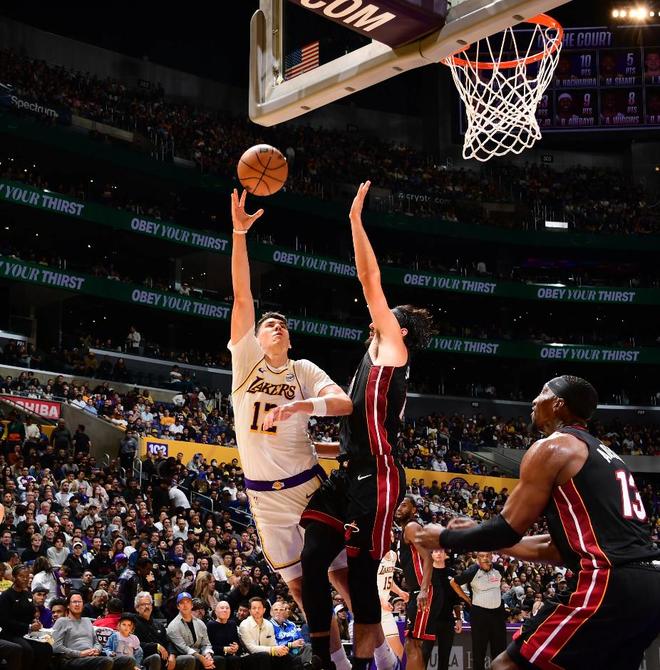 NBA常规赛继续进行,湖人坐镇主场与热火展开对决。紫金军团近日取得了2连胜,状态正盛。此役,艾顿、文森特、克莱伯伤停,勒布朗詹姆斯也因伤缺战旧主,雷迪克调整了阵容,东契奇、里夫斯、海斯、斯马特携手八村塁出任首发。罗齐尔、希罗、诺曼鲍威尔伤停,斯波尔斯特拉的首发阵容是阿德巴约、威金斯、拉松、韦尔与米切尔。两大超人气球队,在此役展开了激烈厮杀。